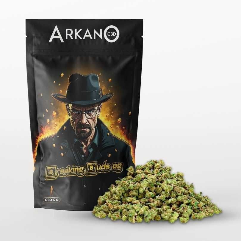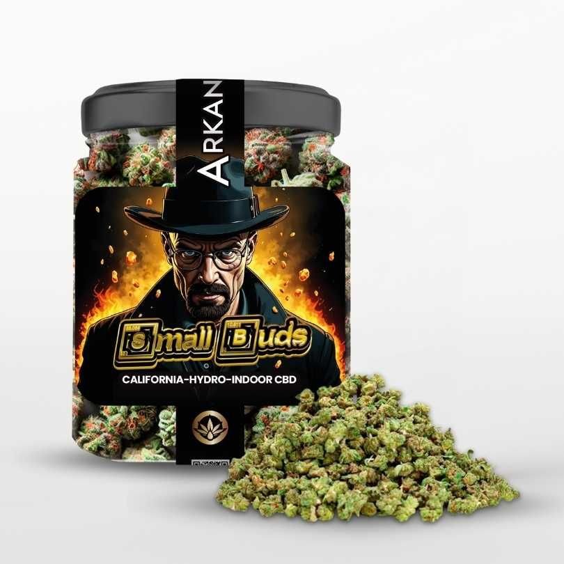 La Breaking Buds de Arkano CBD, presentada en cogollos pequeños tiene efectos muy relajantes, es muy adecuada para uso tanto recreativo como terapéutico.