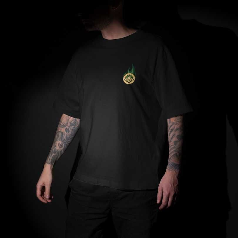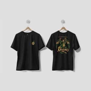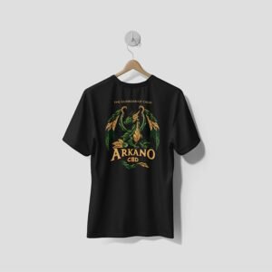 Camiseta en tela de algodón negra, con el logo de Arkano CBD en el frente y un arte original en la espalda. ⚜️