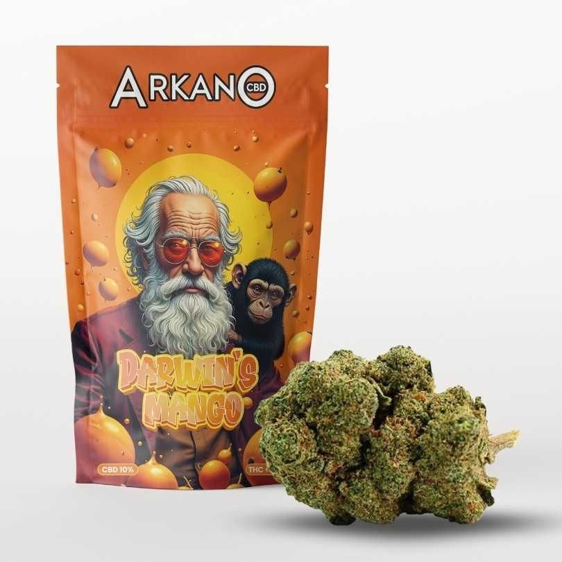 🥭🌿 Darwin’s Mango es una flor de CBD híbrida, cultivada indoor, reconocida por su aroma dulce y afrutado con notas de mango y papaya, que ofrece efectos relajantes y calmantes.