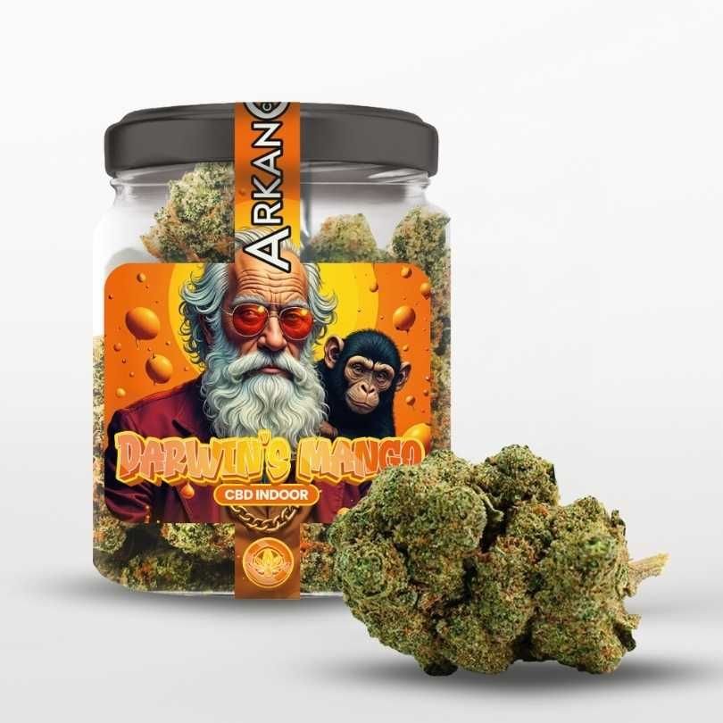 🥭🌿 Darwin’s Mango es una flor de CBD híbrida, cultivada indoor, reconocida por su aroma dulce y afrutado con notas de mango y papaya, que ofrece efectos relajantes y calmantes.