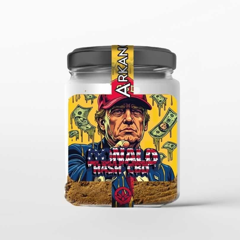 Donald Hash es la nueva propuesta de ArkanoCBD para quienes buscan un hash premium, natural y lleno de matices. Derivado de genéticas cuidadosamente seleccionadas, este concentrado se elabora mediante tamizado en seco, respetando la pureza de cada tricoma sin recurrir a solventes.