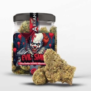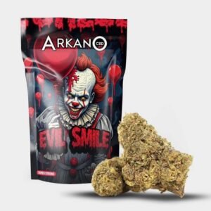 Arkano CBD presenta Evil Smile, una flor californiana de moderadamente alta concentración de cannabinoides, con atractivos cogollos muy compactos, de un verde terroso y aromas intensos.