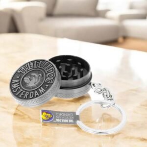 Llavero con metálico con mini grinder de 2 piezas Bulldog Original, con el logotipo en relieve