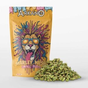 MArley Kush Small Buds CBD, flor de cannabis de cepa californiana hidropónica, conocida por sus potentes efectos, en la presentación de cogollos pequeños.
