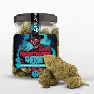 Arkano CBD presenta Nightmare Sherbet, una flor de cepa californiana infusionada de moderadamente alta concentración, con atractivos cogollos muy compactos, y bien formados. Sus notas afrutadas exudan delicadeza, transportando los sentidos a un mundo de dulzura y serenidad.
