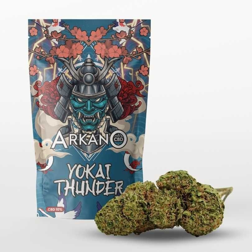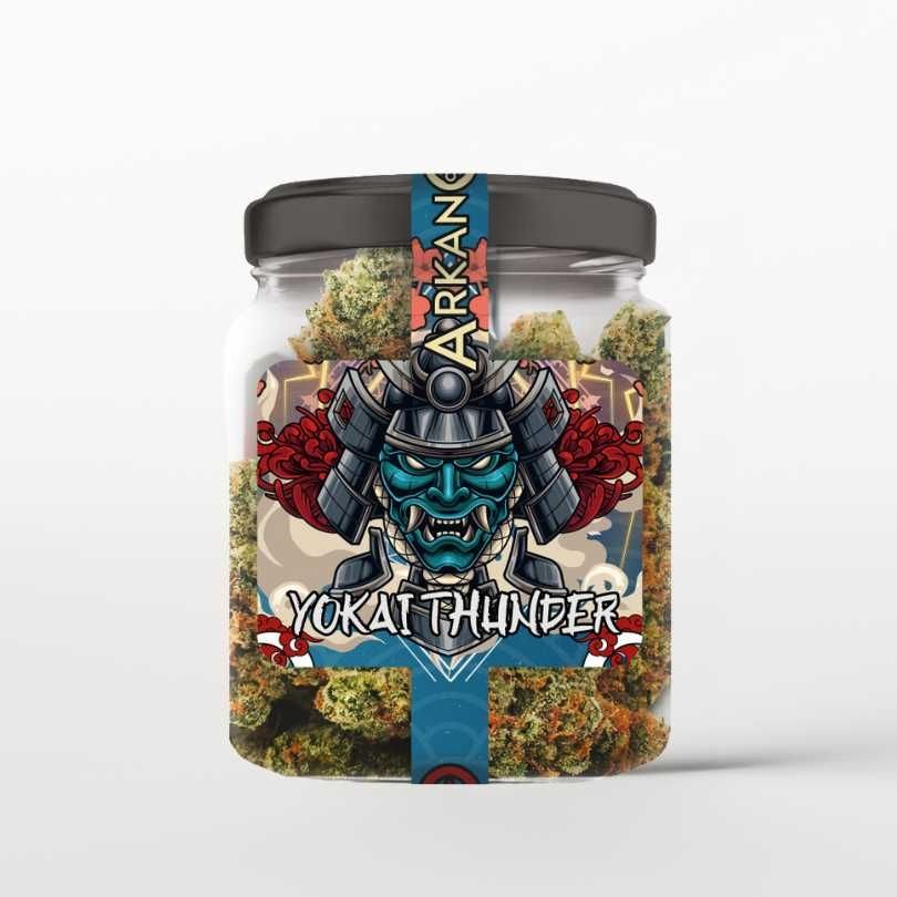 La flor Yokai Thunder de Arkano CBD un híbrido perfecto que combina lo mejor de la genética índica y sativa, envuelto en un cautivador aroma a cítricos, pino fresco y notas terrosas.